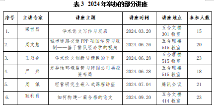 教师及全体硕士研究参加了学术论坛。本年度主办了7场学术讲座、研讨会、培训班,邀请了梁世昌、周文慧、王乃合、严兵等一批知名学者开展学术讲座。(见表3)。全力支持本学科教师参加区内外学术会议,所有教师都参加了全国性或区域性不同层次的学术会议和研修班培训。成功举办“民族地区公共治理高质量发展”学术研讨会。