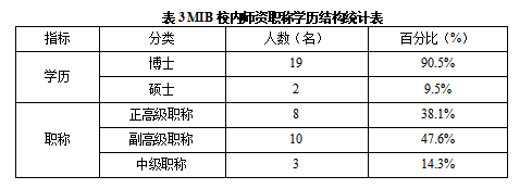 南宁师范大学国际商务专业学位点目前拥有一支敬业务实、素质优良、结构合理的师资队伍。截至2025年11月,共有指导教师21人,其中正高级指导教师8人,占比38.1%,副高级指导教师10人,占比47.6%,具有博士学位导师19人,占比90.5%(见表3)。此外,学院也聘请了来自各行各业的校外力量充当校外导师,为国际商务研究生培养质量奠定了坚实的基础。