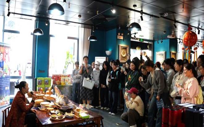 专业见习以“城市更新中的公共服务创新与多元共治”为核心主题,将专业认知与实地场景深度融合。抵达街区后,在园区运营方工作人员的全程引导下,同学们先后走进工业文化长廊、非遗生活馆及东盟小剧场三大特色区域:在工业文化长廊,通过老设备、旧影像等实物史料,梳理老绢纺厂从工业遗址到文创街区的转型脉络,思考城市更新中历史文脉的保护与活化路径。在非遗生活馆,重点观察壮锦、绣球等非遗技艺的“活态传承”模式,分析文创产业与公共文化服务的融合机制。在东盟小剧场,围绕公共文化空间的运营主体、服务内容、受众定位等核心问题,与工作人员展开互动交流,明晰多元主体协同运营的实践逻辑。
